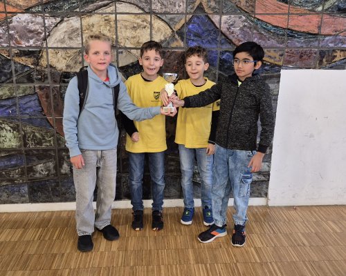 Unsere erste Mannschaft mit Yuvaan Naveen, Jan Wüstenberg, Felix Wüstenberg und Artur Rutz (alle u10 älterer Jahrgang) startete mit einem klaren 4:0-Erfolg gegen die dritte Mannschaft der Schach-Kids Bernhausen ins Turnier. In Runde 2 wartete dann der letztjährige Vizemeister u10 SC Stetten a. d. Fildern. Die Partie endete 2:2, so dass beide Mannschaften ihre Chancen auf den Titel wahrten, aber erstmal andere Teams vorbeiziehen lassen mussten. In Runde 3 erspielten unsere Römer erneut einen deutlichen 4:0-Erfolg, diesmal gegen die SGem Vahingen/Rohr. Bemerkenswert war in dieser Runde Yuvaans geschickt eingesetztes Turmopfer zur Durchsetzung eines Mattangriffs am Spitzenbrett, welcher den vierten Brettpunkt sicherte. Im vorentscheidenden Duell gegen den SSV Zuffenhausen in Runde 4 fanden unsere Römer leider durchgängig nicht gut in die Partien, so dass am Ende ein 0,5:3,5 zu Buche stand. Mit dem 3:1-Sieg gegen Gastgeber Laupheim in der Schlussrunde sicherte sich die erste Mannschaft den Pokal des Drittplatzierten hinter der ersten Mannschaft der Schach-Kids Bernhausen und dem SSV Zuffenhausen.
